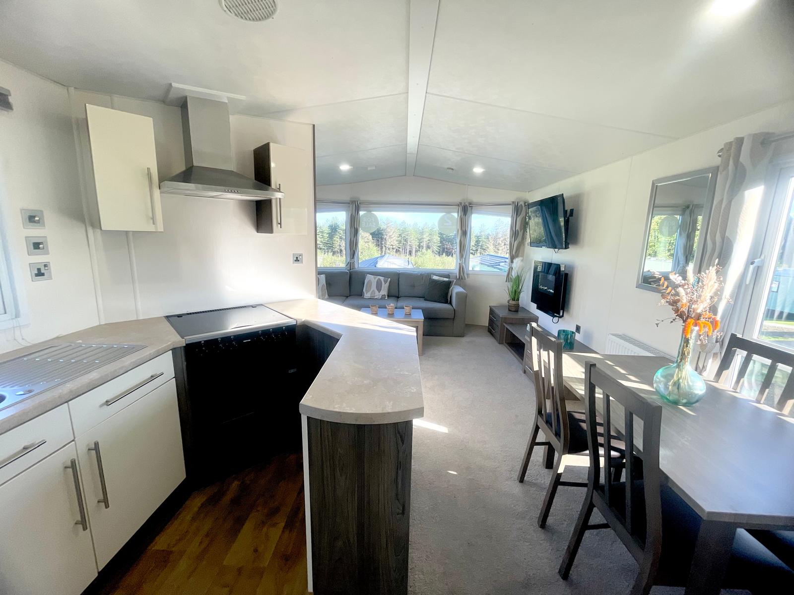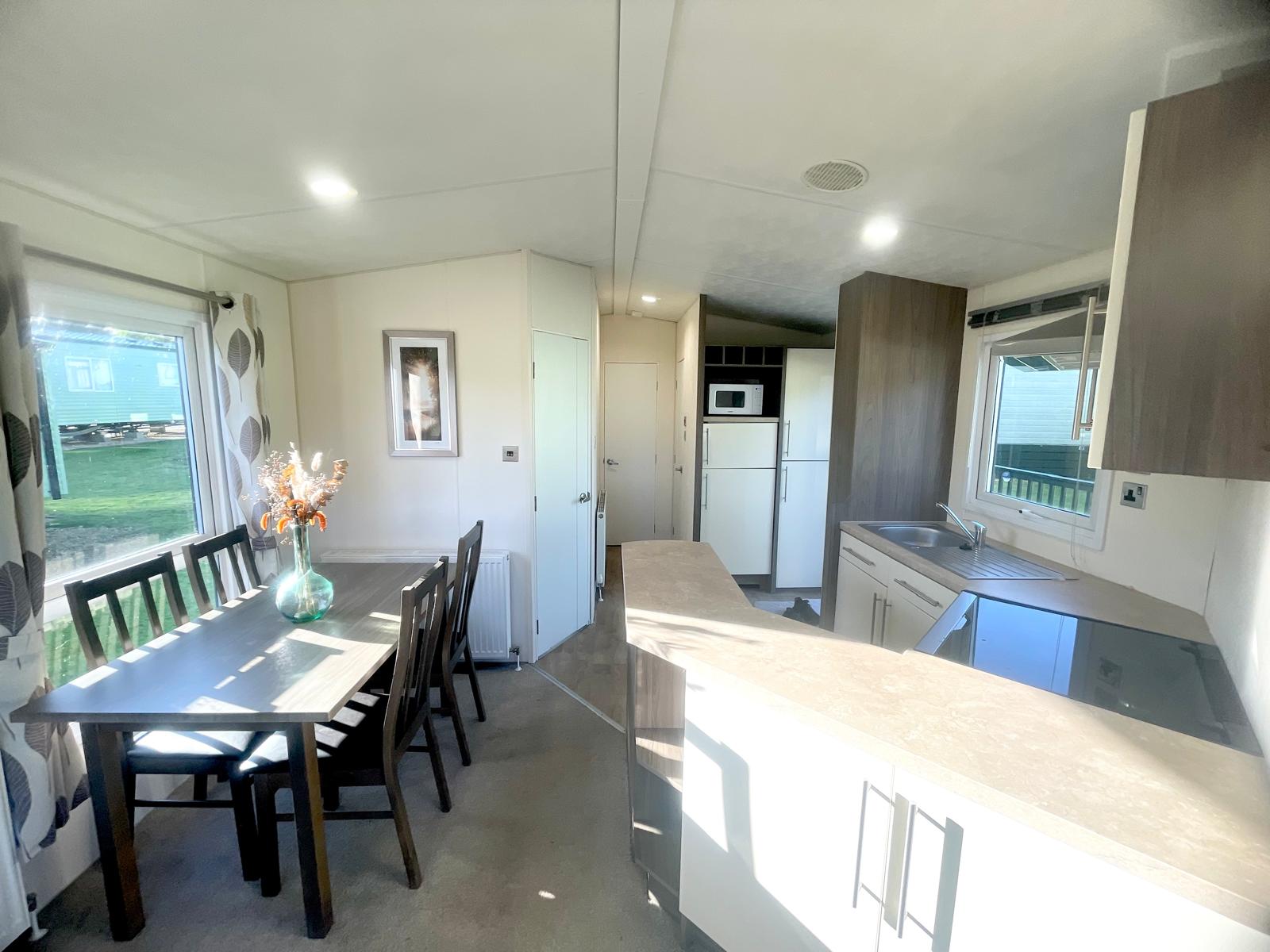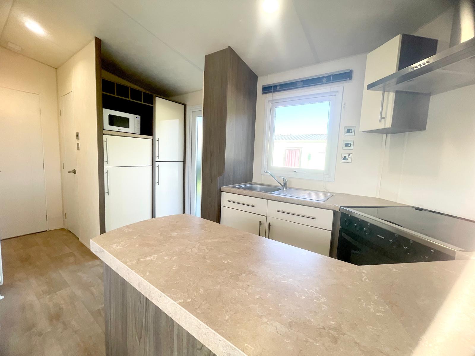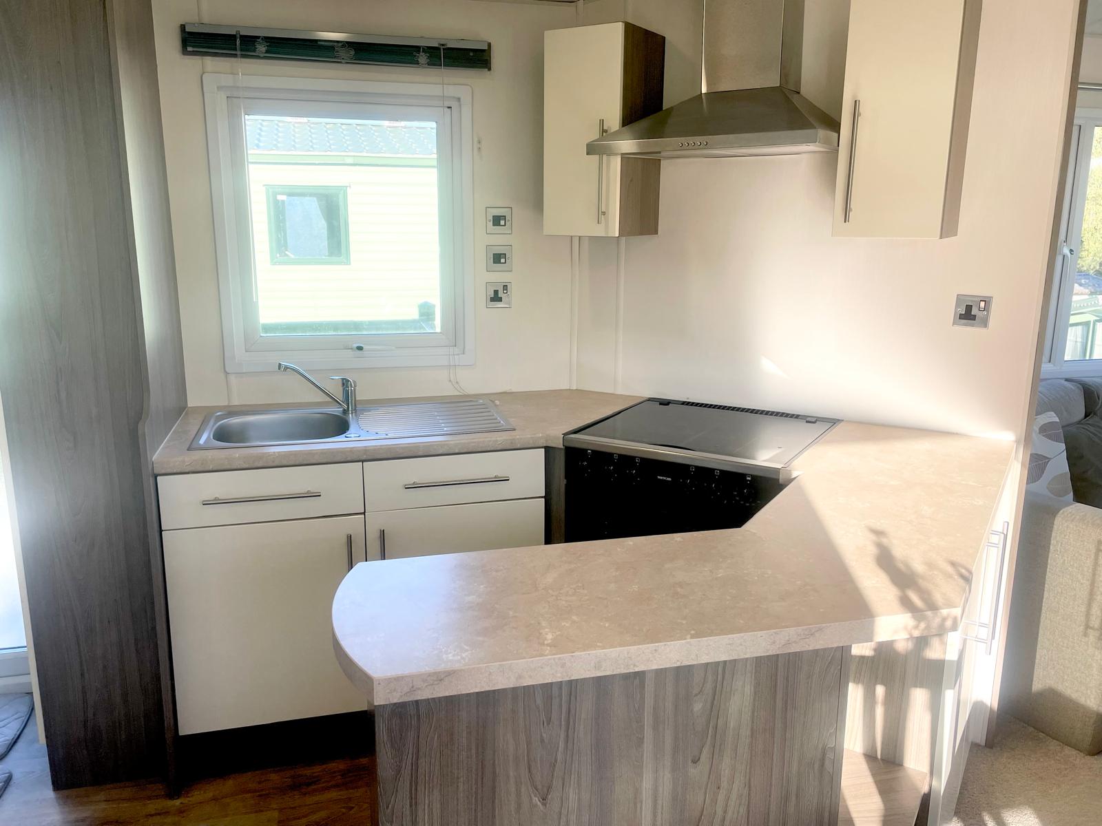 The highlight of the Delta Ascot 2019 is undoubtedly its wonderful lounge area. Whether you choose to wind down peacefully at the end of the day, or enjoy a leisurely evening catching up with friends, you will find yourself in truly idealistic surroundings. The separate cooking station in the Delta Ascot is a practical addition that creates a perfect work space between the key appliances at the heart of this well-designed model. Wake up feeling refreshed in the immaculately designed master bedroom. The large windows flood in light and give you the feeling of being incredibly close to the outdoors. You will also find a superb second bedroom. This comprises of two twin beds and built in furniture, all finished to the highest standard. The generously sized bathroom is perfect for all the family and for those looking.